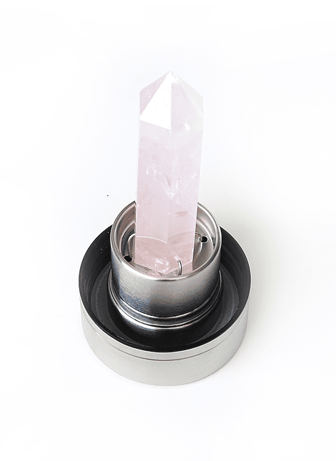 Componentes: Base de Acero Inoxidable con Cuarzo, Cilindro de Cristal, y Tapa de Acero Inoxidable.