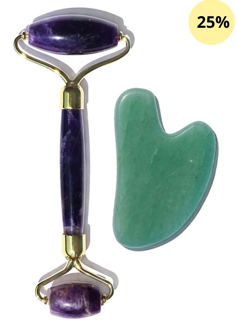 El Kit de Roller + Gua Sha es la combinación perfecta para conservar y mejorar la apariencia de tu piel. El Roller es una especie de gimnasia pasiva facial anti-flacidez. El Gua Sha libera tensiones musculares, ya que puedes ejercer más presión mientras lo deslizas por tu piel.